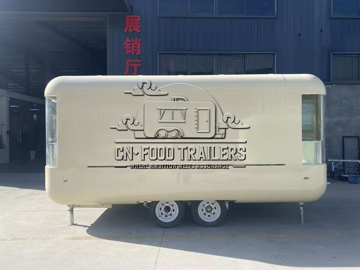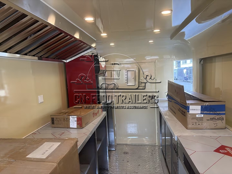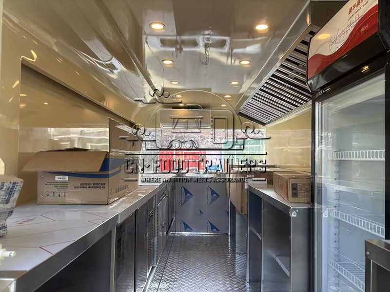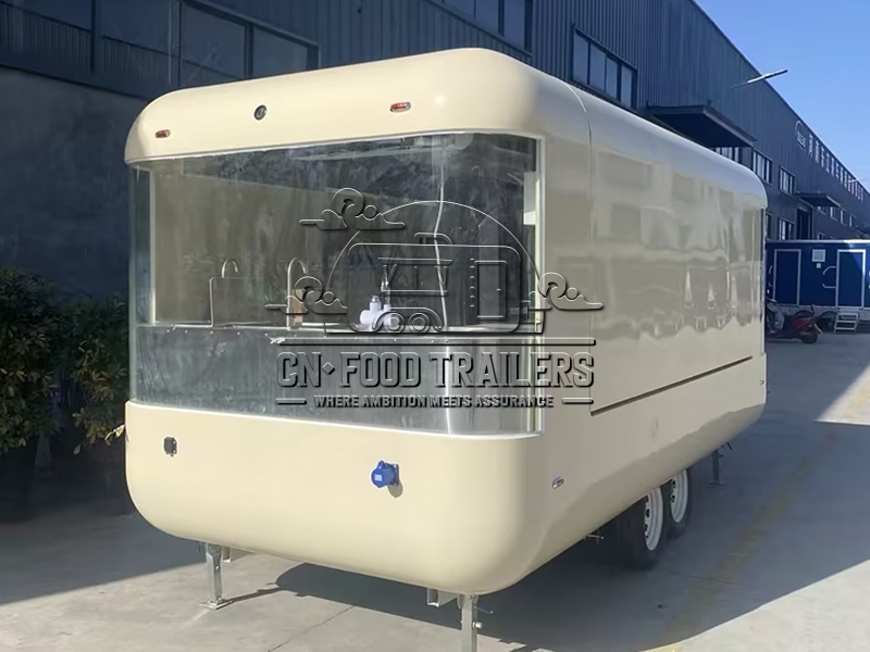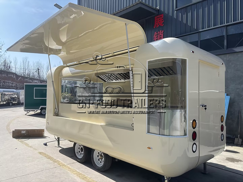 The 16.5ft beige customized flying wing cloud warehouse food trailer is a state-of-the-art mobile food unit designed to meet the diverse needs of modern food vendors, combining elegance, functionality, and durability to make it an ideal choice for entrepreneurs aiming to make a mark in the mobile food industry. This beige-colored food trailer is not only visually appealing but also meticulously crafted to ensure high standards of hygiene and efficiency; its unique flying wing design on the sides adds a modern touch while functionally providing ample shade and space for outdoor serving areas, and the cloud warehouse design concept ensures sufficient storage and working space, making it highly suitable for various culinary ventures.